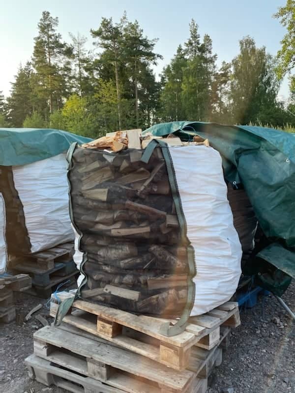 Bjørkeved i 60-liter sekker